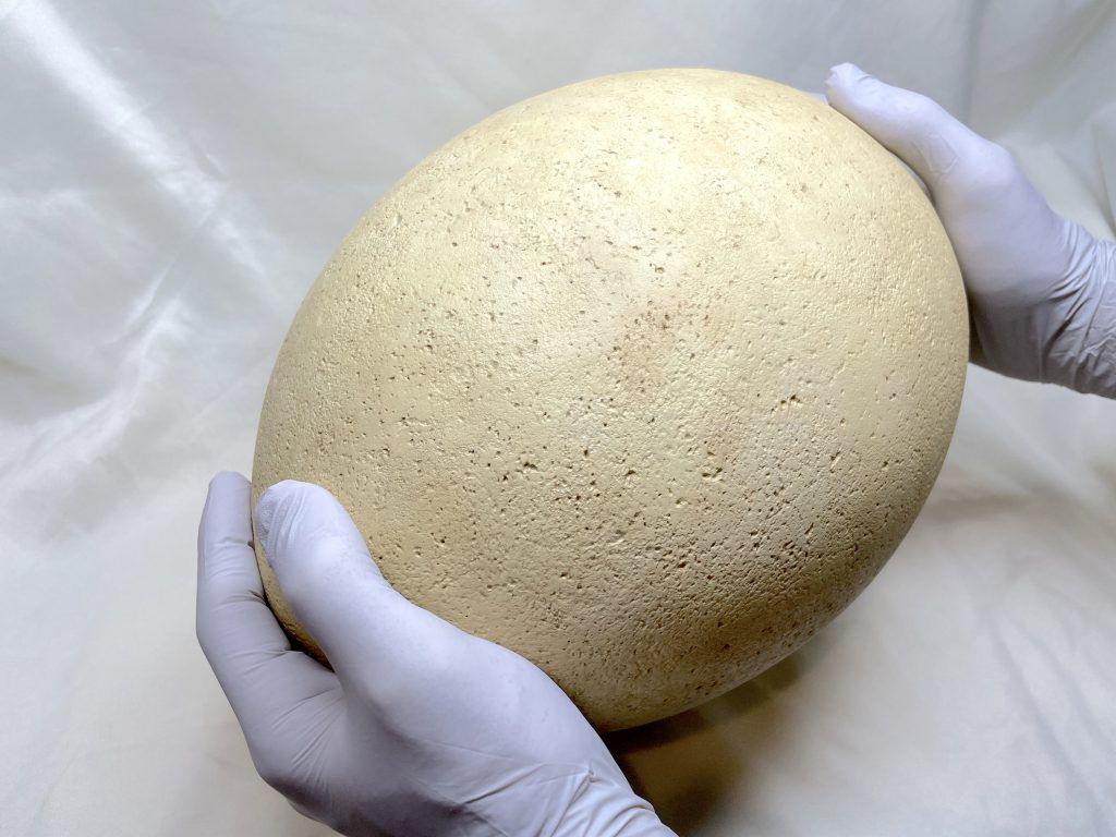 Today, elephant bird eggs occupy an interesting place at the intersection of science, education, and even art. Walk into a natural history museum’s fossil hall or prehistoric life exhibit, and you might encounter one of these giant eggs exhibited alongside dinosaur skeletons and Ice Age mammals. Museums often use the elephant bird egg as a tangible symbol of the wonder of the natural world – something seemingly unbelievable yet real. For example, the London Natural History Museum proudly displayed an elephant bird egg in a line-up of bird eggs to show visitors the astonishing range of egg sizes. The American Museum of Natural History in New York included Aepyornis in its “Mythic Creatures” exhibition, connecting the scientific specimen to the legends of the roc that it inspired. Seeing the egg in person, people often remark that it looks like “something from a dragon’s nest” – it can truly dwarf a human head. In the Canterbury Museum in New Zealand, one such egg sits in storage (a composite assembled from half an egg and scattered fragments), reminding us that New Zealand’s own giants, the moa, had relatives even grander across the ocean.