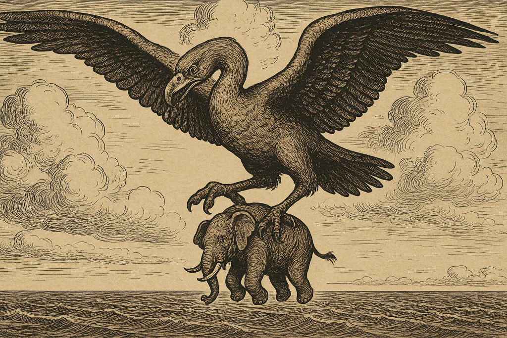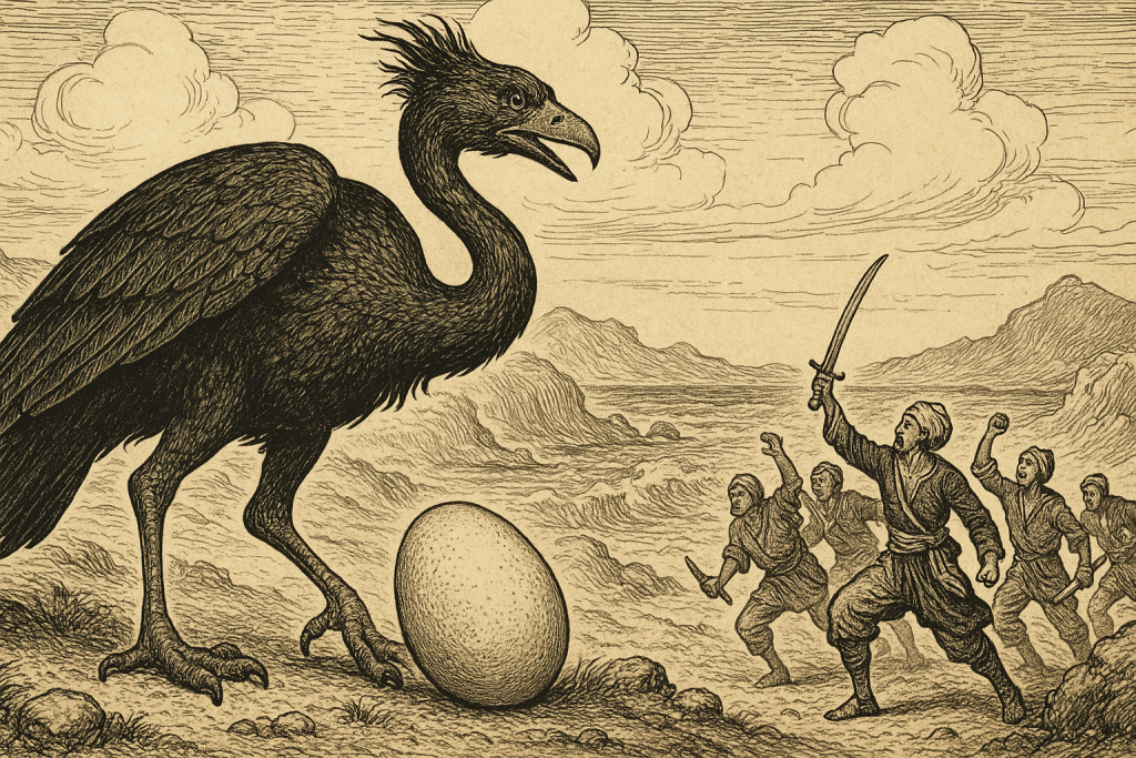 Beyond Madagascar, the wider world first learned of these giant birds through travelers’ tales that blended fact and fantasy. As early as the 9th century, Arabian and Persian sailors spoke of a monstrous bird called the roc (or rukh) in their seafaring lore. These stories found their way into The Arabian Nights, where Sinbad the Sailor encounters a roc’s colossal egg only to incur the wrath of the parent bird. The roc was said to carry off elephants and whales in its talons, feeding them to its young. Such hyperbole was surely fiction, yet it resonated with kernels of truth. Marco Polo, the Venetian explorer, recorded in his 1298 travelogue that on Madagascar there lived a great bird called “rukh” which “appeared like an eagle but of enormous size”. Polo wrote that the locals described this bird as strong enough to “seize an elephant with its talons”. Clearly an exaggeration, since no elephants live in Madagascar, but one that gave the “elephant bird” its popular name in later retellings. Likewise, the great Moroccan traveler Ibn Battuta in the 14th century mentioned hearing of gigantic birds during his sojourns near the western Indian Ocean. These early accounts, though fantastical, hinted at an underlying reality. Something very large was out there in Madagascar, sparking the imaginations of those who heard of it.