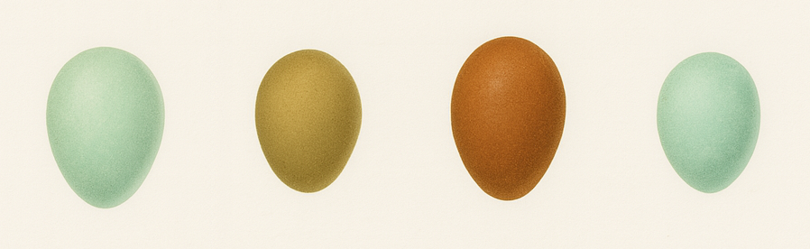 The Phthalo Blue + Burnt Sienna combination is artistically powerful. It can yield teal, olive, or brown depending on proportions. This mirrors how nature’s two pigments form a continuum of egg colors. Phthalo blue and burnt sienna together can produce everything from brown-red to teal to olive green and almost black greens just by varying the mix. So with these two paints on the palette, you effectively have the same “two-pigment system” birds use.