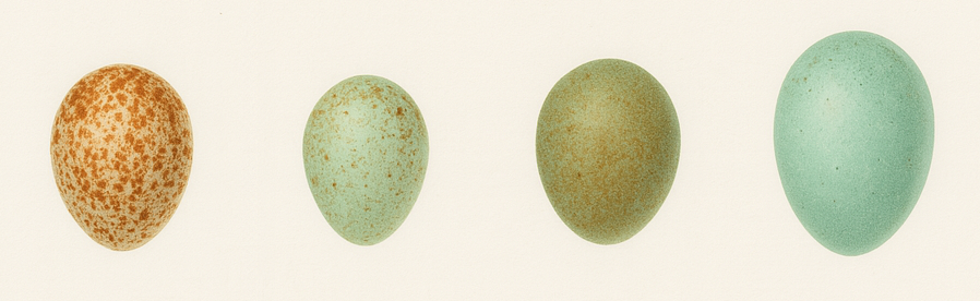 Birds’ eggs exhibit a surprisingly narrow palette of natural pigments, yet they produce a stunning variety of colors and patterns. In fact, nearly all the hues seen on bird eggshells come from just two pigments: a bluish-green one (biliverdin) and a reddish-brown one (protoporphyrin). These pigments, laid over the white calcium carbonate eggshell, can mix and layer to create everything from the famous teal of a robin’s egg to the speckles on a quail egg. For artists seeking to recreate these colors with high fidelity, understanding the science behind egg pigments and finding their closest paint equivalents is key. Below is a detailed guide to the pigments of bird eggs and the artist-grade colors that best match them, complete with examples and mixing tips.